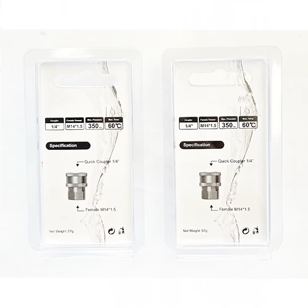 Tämän tuotteen erityiset tuotetiedot ovat seuraavat. Toinen pää on ulkokierre M14×1,5, halkaisija 12,4 mm, ja toinen pää on 1/4-liitin, halkaisija 12 mm. Kierteen kokoa valvotaan tiukasti, mikä voi mukautua tarkasti asiaankuuluviin puhdistuslaitteisiin varmistaakseen vakaan tiivistyksen kytkennän aikana. 1/4 tuuman Two Touch Brass -pikaliittimen materiaali on messinkiä. Messinkimateriaalilla on hyvä korroosionkestävyys ja se voi olla vakaa kosteassa työympäristössä pitkään. Kemiallisia reaktioita ei ole helppo aiheuttaa, mikä vaikuttaa vakaaseen yhteyteen. Samaan aikaan messinkimateriaalilla on myös tietty lujuus, joten korkeapaineisen vesivirtauksen vaikutuksesta sillä voi olla myös tietty paineenkestävyys, jota ei ole helppo rikkoa, mikä vaikuttaa yleiseen tiivistykseen. Itse tuotteen Two Touch -rakenne tekee asennuksesta ja purkamisesta mukavampaa. Kun kohdistat liittimeen kytkettävän osan ja painat sitä kevyesti, liittäminen voidaan suorittaa loppuun. Purkamisen yhteydessä käänteinen toiminta voi suorittaa erotustyön. Koko prosessia ei tarvitse avustaa monimutkaisilla työkaluilla, ja se vie hyvin vähän aikaa. , parantaa huomattavasti työn tehokkuutta, eikä se rajoita käyttäjien määrää, ja myös ei-ammattilaiset pääsevät helposti alkuun.
