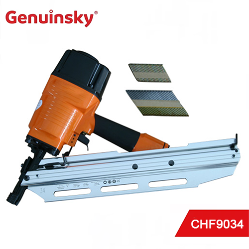 CHF9034 Air -leikatun pään kehystyskynsaa, joka on ammattilaisten käyttämä pneumaattinen kynsipistooli, käytetään laajasti koristeessa, kattoasennuksessa ja erilaisissa kynsien levitysskenaarioissa. He ovat heidän hyviä auttajiaan. Valitse Ningbo Genuinskyn työkalut, valitse helppous ja tehokas. CHF9034 Framing Nailer on viisas valinta ammattihenkilöstölle.