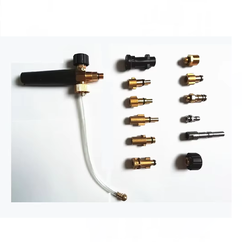 Kupariautojen pesukoneiden vaahto -Lance tarjoaa erinomaisen laadun. Tuote voidaan varustaa lisävarusteilla erilaisista eritelmistä ja materiaaleista A: sta M. - Jokaisella lisävarusteella on tietty tarkoitus. Mukautetulla Karcher Nilfisk Lavor Bosch BD: llä ja muilla autopesurisareilla se voi vastata monien skenaarioiden puhdistustyöhön. Tämä vaahtopanssi on valmistettu kuparimateriaaliliitoksista. Kuparilla on erinomainen korroosionkestävyys, ja sitä voidaan käyttää monissa ankarissa työympäristöissä. Sillä on hyvä ulottuvuus ja kovuus, mikä voi ylläpitää itse tuotteen kestävyyttä, eikä sitä ole helppo rikkoa ja aiheuttaa vesivuotoja. Päätuotteen pullon suuri kapasiteetti voi pitää enemmän saippua, jota ei tarvitse täydentää usein. Kahva antaa käyttäjille mahdollisuuden pitää sitä helposti, eikä se ole helppo aiheuttaa väsymystä. Sopivalla korkeapainepesurilla se voi helposti tuottaa runsaasti vaahtoa.