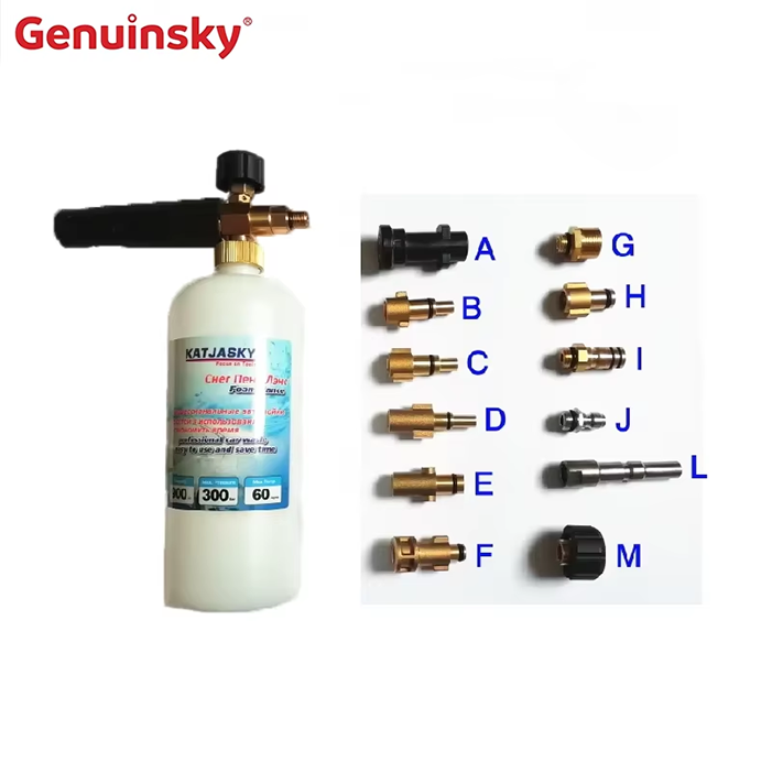 Genuinsky -tuotemerkki Copper Car Washer Foam Lance, joka voidaan mukauttaa Karcher Nilfisk Lavor Bosch BD -pesukoneen vaahtogeneraattoriin sn ow -kupla Lance Foamer. Genuinsky -tuotemerkin kuparin pesukoneiden vaahto Lance on yhteensopiva vaahtogeneraattoreiden, lumikupla -lanssien ja vaahtobrändien kanssa.