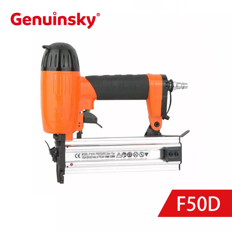 F50D Air Brad Naulaer on nyt suosituin malli, jolla on kypsä tuotetekniikka, sileä käyttö ja pitkä käyttöikä. Ei vuotoja, ei kynsien häirintä. Vakaa ja luotettava laatu on ensimmäinen valinta ammatillisille markkinoille. Ningbo Genuinsky Import and Export Co., Ltd. -ilmapistoolin valitseminen tarkoittaa helpon ja tehokkuuden valintaa.