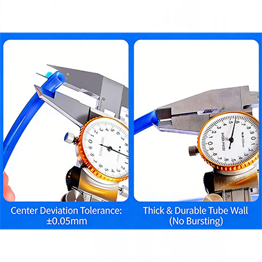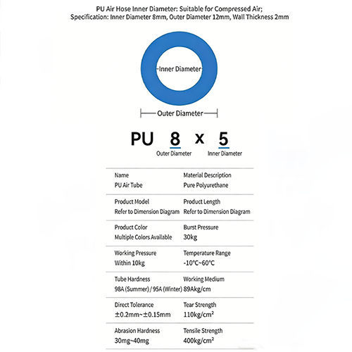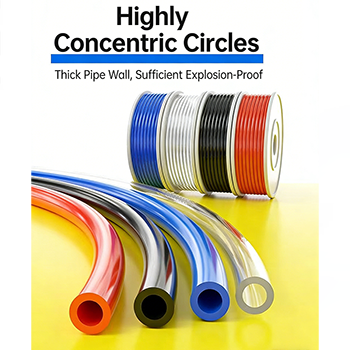Ensinnäkin ydinparametreista korkean puhtauden PU-räjähdyssuojattu ilmaletku on suunniteltu erityisesti paineilman siirtoon. Tuotteen ydinspesifikaatio on PU 8×5 (sisähalkaisija 8 mm, ulkohalkaisija 12 mm, seinämän paksuus 2 mm), joka voi mukautua useimpien markkinoiden pneumaattisten työkalujen ja automaatiolaitteiden käyttöliittymätarpeisiin. Sen oma erittäin samankeskinen rakenne voi varmistaa vakaan ilmavirran siirron ja samalla parantaa henkitorvea itseään räjähdyskestävyyden parantamiseksi. Autojen valmistuksen ja elektroniikkakomponenttien kokoonpanon alalla putkistojen turvallisuus- ja vakausvaatimukset ovat suhteellisen korkeat, joten henkitorven vakaus on erittäin tärkeää.