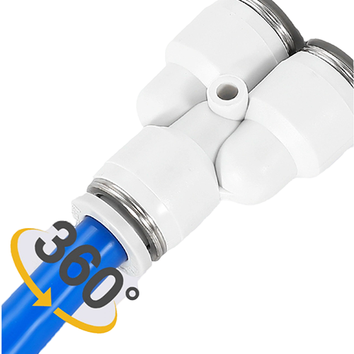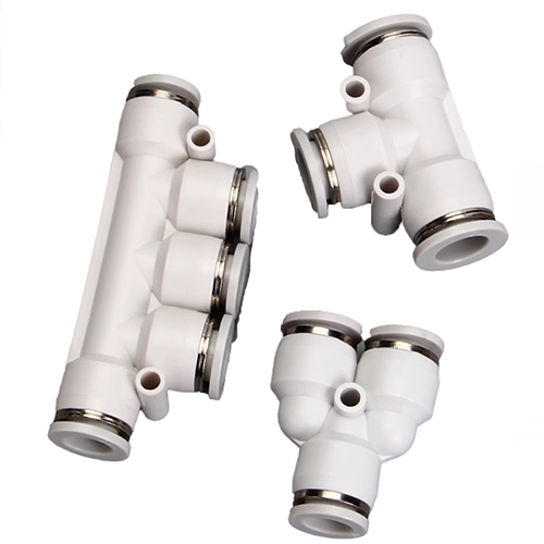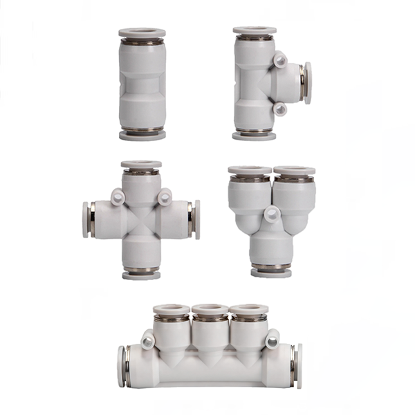 Seuraavassa on johdanto useista monien eritelmien Quick-Connect Fitting -sarjan tärkeistä ominaisuuksista. Ensimmäinen ominaisuus on itse tuotteen koostumus. Itse liitos koostuu nelinkertaisesta rakenteesta. Ensimmäinen painava rakenne on vahva muovinen korkki. Erittäin sitkeä tekninen muoviruiskupuristus tekee tuotteesta itse sekä korkeapaineen että kulutusta kestävän, mikä antaa tietyn suojavaikutuksen tuotteen yläpinnalle. Toinen tärkeä rakenne on kiinteä korttiholkki. Ruostumattomasta teräksestä valmistetulla kiinteällä korttiholkilla on erinomainen korroosionkestävyys, ja henkitorvea on myös erittäin lujasti lukittu, jotta se ei putoa käytön aikana. Kolmas raskas rakenne on erittäin luja muovikuori. Itse tuotteen päärunko on valmistettu vahvistetusta teknisestä muovista, jolla on erinomainen paineenkesto ja hyvä eristys. Neljäs tärkeä rakenne on irrotin. Irrottimen muotoilu mahdollistaa sen, että käyttäjä voi helposti purkaa henkitorven painamalla. Samalla muotoilu on ergonominen ja tekee käytöstä mukavampaa. Toinen piirre on tuotteen viisi rakennemuotoa. Ne ovat suoraa läpikulkutyyppiä, T-tyyppistä kolmisuuntaista tyyppiä, ristikkäistä nelisuuntaista tyyppiä, Y-tyyppistä kolmisuuntaista tyyppiä ja monisuuntaista tyyppiä. Nämä rakennemuodot ovat yksittäisistä liitännöistä monimutkaisiin temppuihin, jotka kattavat periaatteessa pneumaattisten putkistojen asettelutarpeet eri skenaarioissa kokonaisvaltaisesti, mikä tekee järjestelmäsuunnittelusta joustavan ja tehokkaan. Kolmas ominaisuus on monispesifikaatiosovitus. Liitin tukee kuutta erityyppistä henkitorven ulkohalkaisijaa: 4 mm, 6 mm, 8 mm, 10 mm, 12 mm ja 16 mm, jotka sopivat tavallisiin PU henkitorvi- ja nylonputkiin ja sopivat tarkasti henkitorven ja laitteiden kanssa. Mikropneumaattisista komponenteista suuriin laitteisiin kaasuputkien halkaisijoiden tarpeet voidaan täyttää.