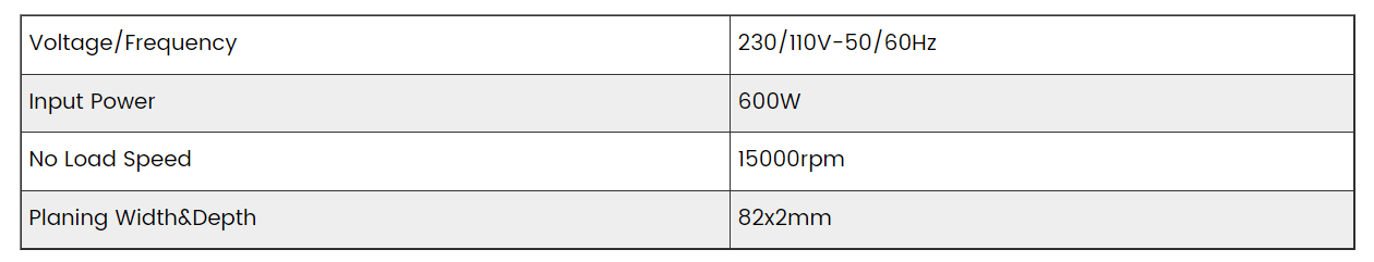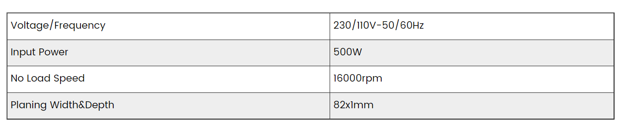 Ningbo Genuinsky Company myy tällä hetkellä kahta tyyliä sähköpistoreita. Ensimmäisen EP002 -sähköplanerin jännite/taajuus on 230/110 V - 50/60Hz, tuloteho 500W, no -kuormituksen kierto. Nopeus saavuttaa 16000 rpm ja höylyn leveys ja syvyys ovat 82x1 mm. Puun pinnan karkea osa voidaan hoitaa nopeasti, jotta se olisi sileä ja litteä. Voit myös säätää tuotteen terän kulmaa, käyttää sitä viimeenä ja urana ja tehdä viistoja ja uria. EP023 -sähköplanerin jännite/taajuus on myös 230/110 V - 50/60Hz, tuloteho nostetaan arvoon 600 W, kuormitusnopeus on 15000 rpm ja höylysleveys ja syvyys ovat 82x2mm. Tuote käyttää alumiiniseosrunkoa, joka selviää enemmän puuntyöstötoimenpiteistä. Näiden kahden välillä on joitain eroja. Esimerkiksi EP023-alumiiniseoskappaleessa on parempi lämmön hajoaminen ja kestävyys kuin EP002, joten siitä tulee hyödyllisempi raskaammissa ja pidemmän aikavälin projekteissa. Samanaikaisesti EP002 on kannettavampi, edullisempi hinnassa ja suhteellisen kustannustehokas. Se sopii vähemmän raskaisiin puusepäntyöhön ja perheen henkilökohtaiseen DIY -käyttöön.
