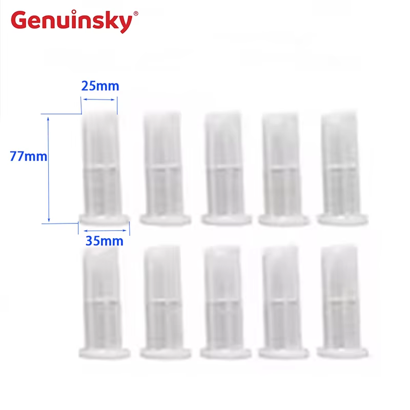 Genuinsky -tuotemerkin vesisuodatinverkko, tuotteen ylimmän halkaisija on 25 mm, korkeus on 77 mm ja alahalkaisija on 35 mm. Tuotteen laatu taataan, jotta suodatin voidaan stabiloida korkeapaineisen puhdistuskoneen sisällä ja veden virtaus voi kulkea suodattimen läpi sopivalla virtausnopeudella ja virtausnopeudella hyvän suodatusvaikutuksen saavuttamiseksi.