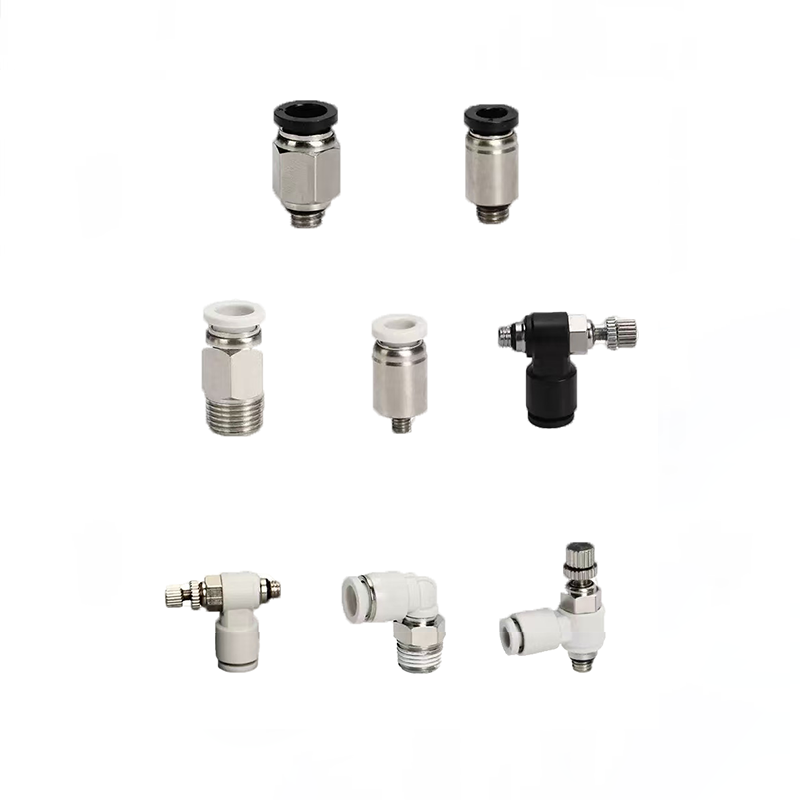 Genuinskyn Micro Mini Connector -sarjaon rikas luokkayhdistelmä, ei yhtä tuotetta. Seuraavassa on tarkka kuvaus: Ensinnäkin suorakulmainen liitin. Se sopii yleensä putkilinjavaatimuksiin, jotka vaativat 90° ohjauksen, ja tämä kulma voi säästää tietyn määrän asennustilaa. Toiseksi läpivientiliitin. Suhteellisen pienen virtausvastuksen vuoksi tällaisella liittimellä on korkea siirtotehokkuus. Kolmanneksi kaasuventtiilin nivel. Liittimen virtauksen säätöasetuksella voidaan ohjata tarkasti virtaustehoa, mikä sopii laitteille, jotka tarvitsevat nopeuden ja paineen säätöä. Neljäs, moniliitin. Multi-pass tarkoittaa, että se voi kattaa kolmi-, nelitie- ja muiden monisuuntaisten siirtojen tarpeet ilman, että tarvitaan monimutkaisia putkilinjakomponenttien liitoksia, mikä voi tarjota tiiviimmän ja tehokkaamman liitostyön. Samaan aikaan, jotta voidaan kattaa putkilinjan asettelun tarpeet monimutkaisissa työolosuhteissa, kuristusventtiilillä varustettu liitos tukee 360° kiertosäätöä, mikä tarkoittaa, että se voi rikkoa perinteisen liitoskulman kiinnityksen rajoituksen ja henkitorven suuntaa voidaan säätää vapaasti laitteen asennustilan mukaan. Eri tyyppisiä liittimiä voidaan mukauttaa erilaisiin putkilinjan käyttöskenaarioihin. Micro Mini Connector -sarjaa ei enää rajoita toimintojen hienostuneisuus, joten liittimien valintaa ei enää rajoiteta.