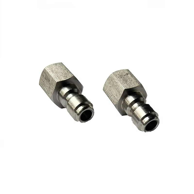 Ruostumattoman teräksen 1/4 tuuman Quick Plug G1/4 Female -kokorakenne on erityisen tarkka. Toinen pää on 1/4 tuuman pikaliitin, halkaisija on 11,7 mm ja toinen pää on G1/4, halkaisija on 11,8 mm. Pikapistokkeen suunnittelulla voidaan saavuttaa nopea liittäminen ja purkaminen työssä ilman, että käyttäjiltä vaaditaan työkaluja kytkemiseen kuten perinteiset liittimet, joten se voi säästää huomattavasti aikaa ja parantaa siivoustyön tehokkuutta. Autojen siivouksessa esimerkiksi kaupallisten autojen siivousalalla tarvitaan päivittäin suuri määrä ajoneuvojen siivoustyötä, joten kätevä liitäntä voi säästää sekä aikaa että vaivaa. Lisäksi päivittäisessä auton siivouksessa yksittäisenä käyttäjänä yksinkertaisempi käyttöprosessi voi myös helpottaa puhdistusta. Ruostumaton teräs 1/4 tuuman pikaliitin G1/4 Female on valmistettu korkealaatuisesta ruostumattomasta teräksestä. Siivoustyö vaatii usein kosteaa ympäristöä ja joitakin puhdistusaineita, ja ruostumattomalla teräksellä on erinomainen suojaus. Syövyttävä, joten se voi säilyttää oman vakautensa, eikä sitä ole helppo ruostua pitkäaikaisessa puhdistustyössä. Samaan aikaan ruostumattomalla teräsmateriaalilla on myös tietty kovuus ja lujuus, joka kestää voimakkaan korkeapaineisen vesivirtauksen vaikutuksen. Se voi ylläpitää hyvää vedenpainetta puhdistusprosessin aikana, eikä sitä ole helppo rikkoa, mikä vaikuttaa koko tiiviyteen. Tämä liitin tekee veden ulos puhdistuksen aikana vakaammin, joten auton pöly, lika ja lika voidaan pestä helposti pois.